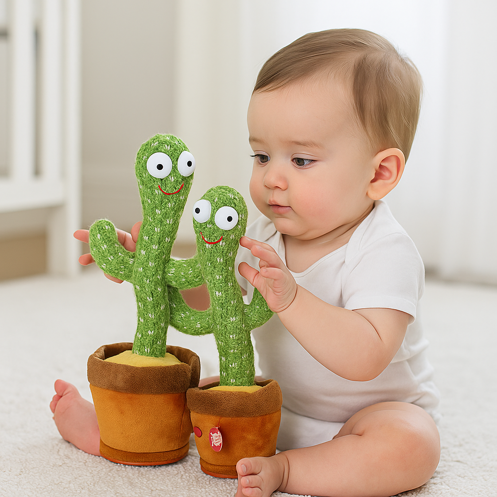 Meet the GroovyCactus Pal, the hilarious, music-loving cactus that dances, talks, and entertains like no other! This plush electronic toy is designed to bring endless laughter and movement into your little one’s playtime. With 120 built-in songs, silly dancing moves, and voice mimicking capabilities, it's the perfect birthday gift that delights toddlers and kids alike.