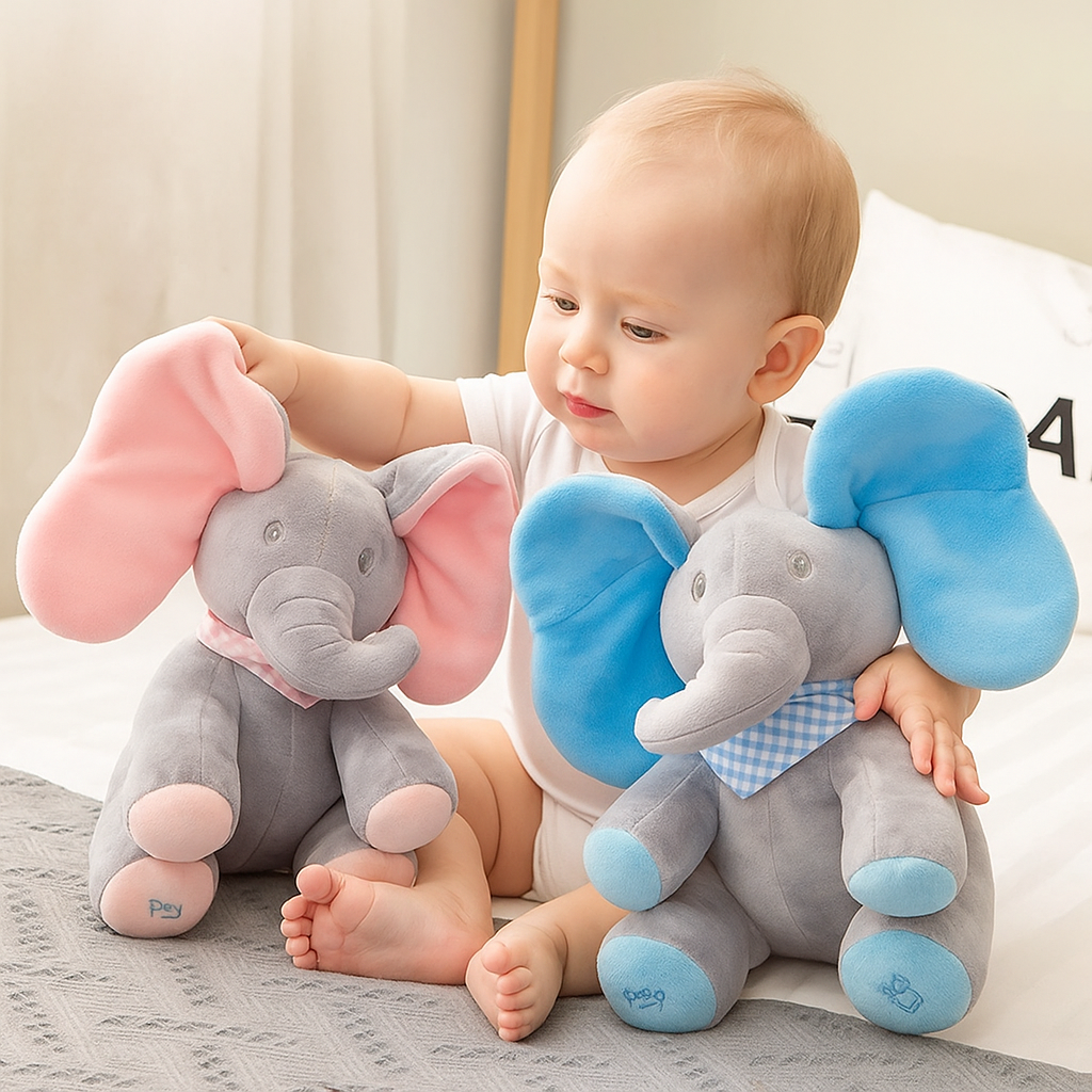 🙈 Animated Peek-A-Boo Ears – Ears flap over its eyes for real hide-and-seek play that boosts baby’s curiosity and attention.